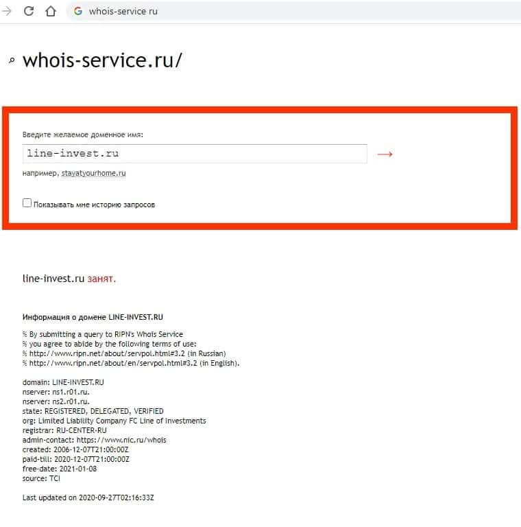 Домен line-invest ru существует 5042 дня