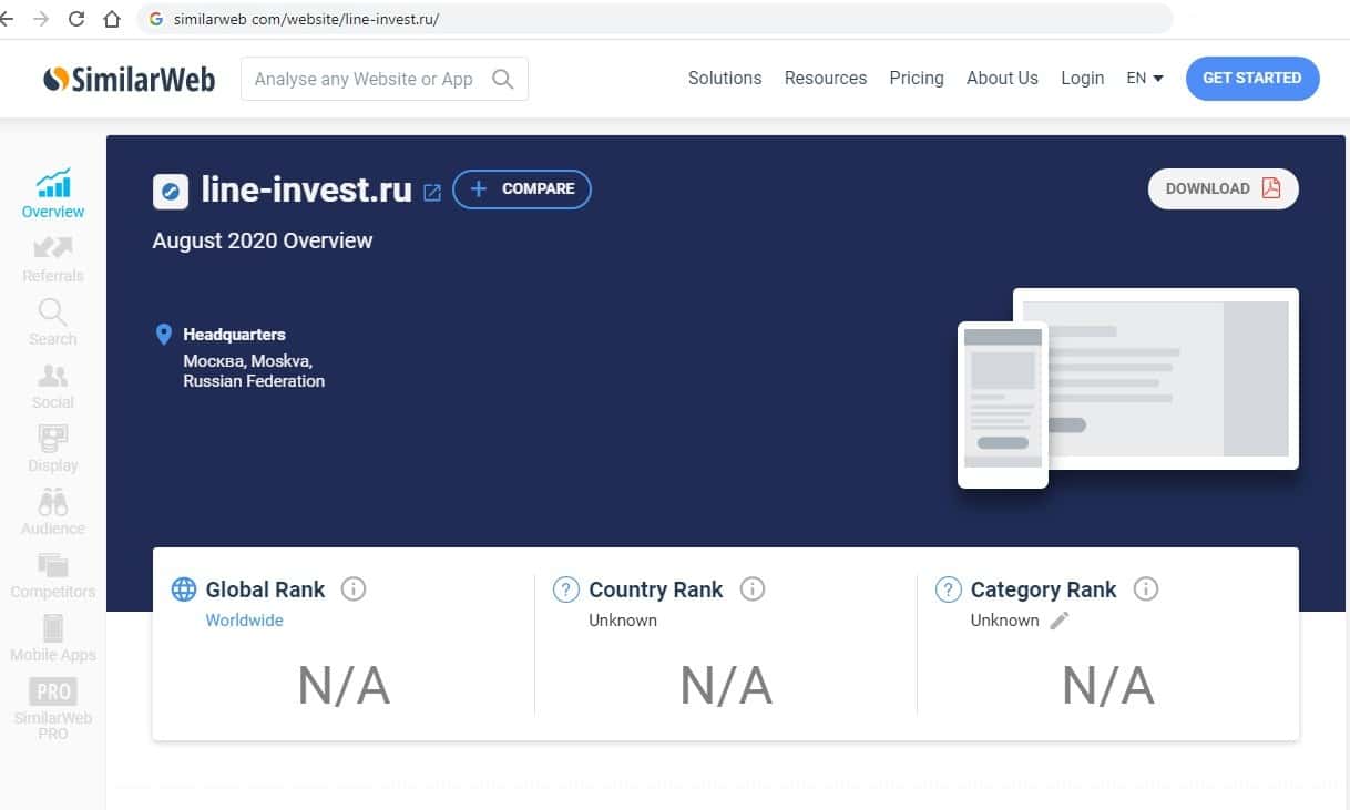 Сайт line-invest ru настолько убогий, что по нему не показываются даже источники трафика. Из этого сразу же можно сделать вывод, с кем мы имеем дело.