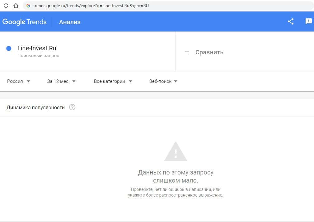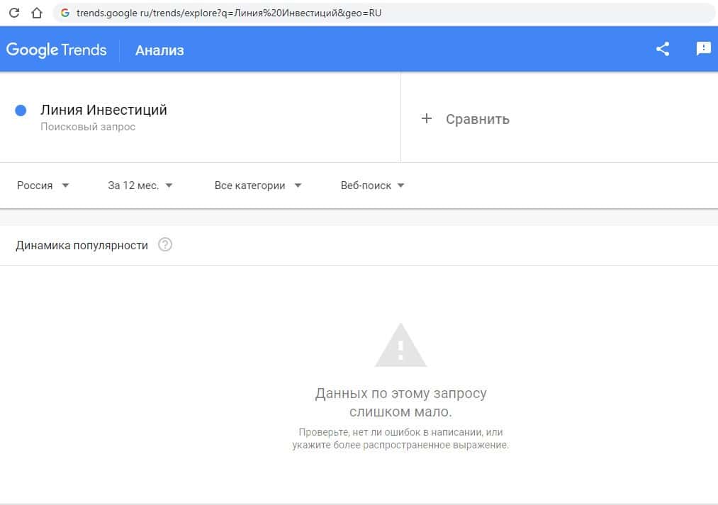 - Какое количество запросов по Линия Инвестиций показывает Google?
