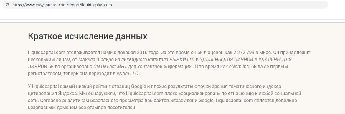 liquidcapital com - главный интернет ресурс мошенников