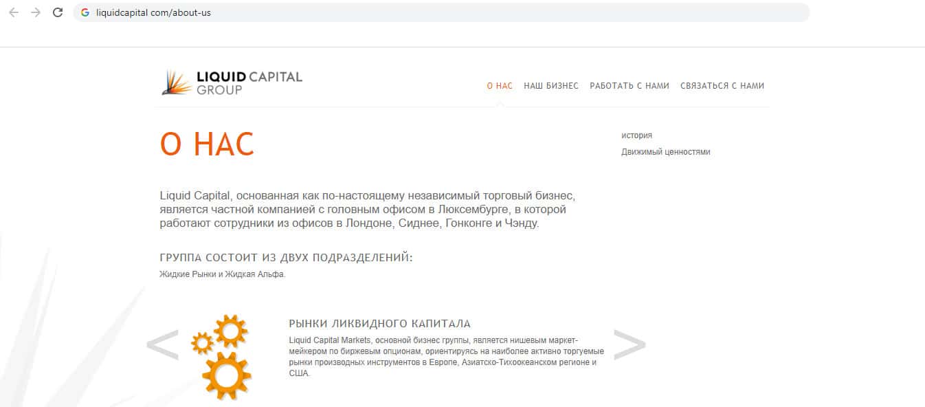 Прежде чем начать обзор сайта хотелось бы продемонстрировать то, как компания кидал Liquid Capital рассказывает о себе. В пункте "О нас" - фирма указала, что основанна как независимый торговый бизнес, и является частной компанией в офисами в нескольких странах. Но не стоит доверять мошенникам, так как проверить информацию никто не может.