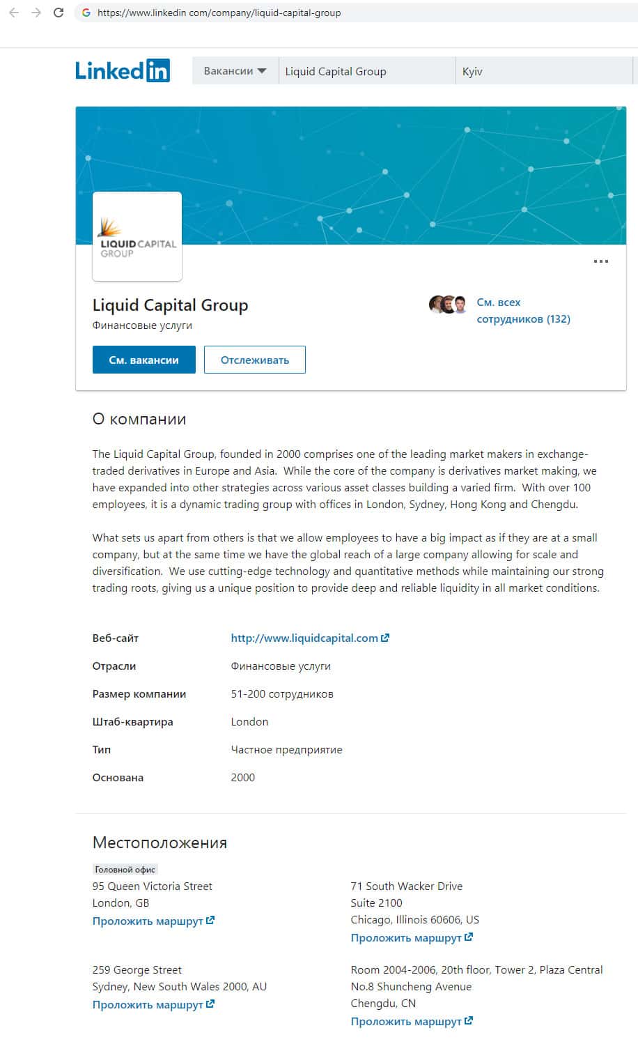 Несмотря на отсутствие информации о социальных сетях, нам удалось найти страницу кидал Liquid Capital в социальной сети для поиска и установления деловых контактов. Там компания видимо ищет поддержку и новых клиентов. Фирма указала информацию о себе, и то, что имеет штат более 100 человек.
