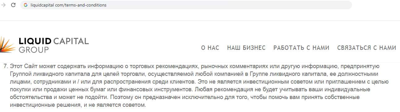 Лохотрон Ликвайд Капиал Групп полностью отказывается от ответственности за предоставляемые услуги
