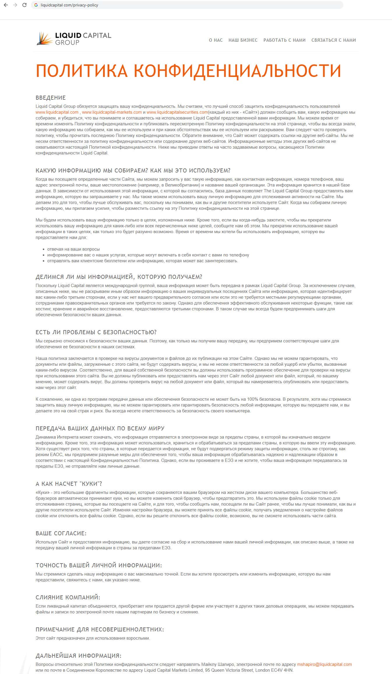 - Политика конфиденциальности, предоставлена кидалами Ликвайд Капиал Групп