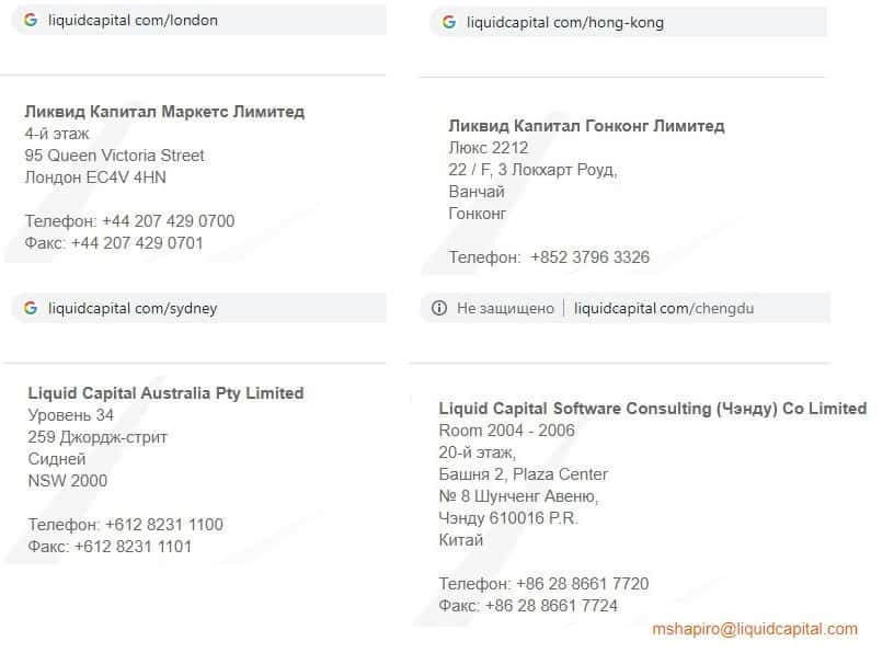 - Контактные данные мошеннической фирмы Liquid Capital
