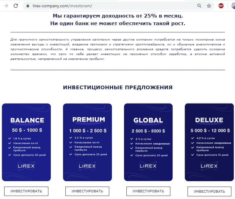 Инвестиционная компания Lirex-Company - полностью лживый проект, созданный для обмана и сбора денег