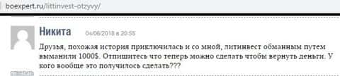Мошенники из лохо-кухни LittInvest своровали у своего клиента 4000 долларов