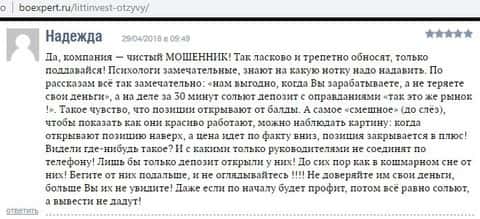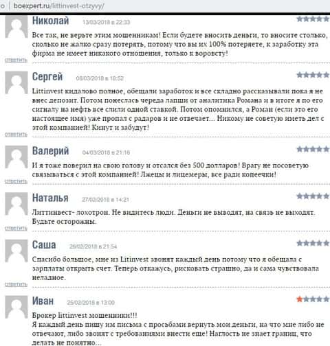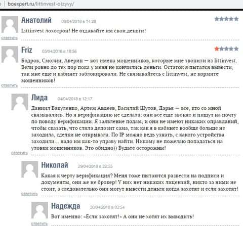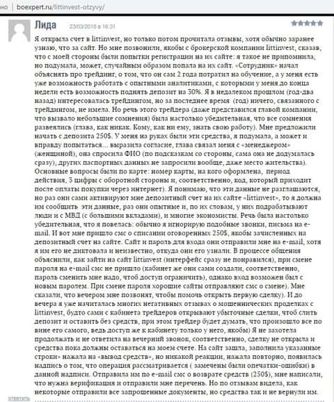 - Град негативных отзывов о брокерских мошенниках LittInvest