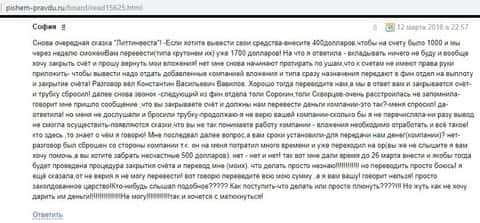 - Лохотронщики LittInvest не хотят отдавать женщине 11 000 долларов