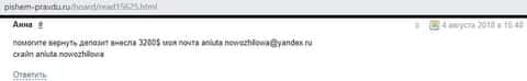 - Аферисты Литт Инвест развели пользователя всемирной сети почти на 3000 долларов