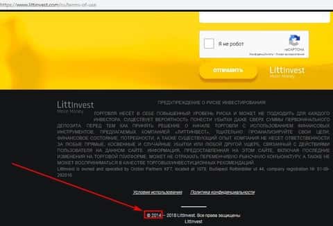 Мошенники форекс-кухни Литт Инвест вскрыли свои недочеты на своем официальном сайте. Если проверить на главной странице с какого они года работают, то там стоит цифра 2014 год. Что не соответствует действительности.