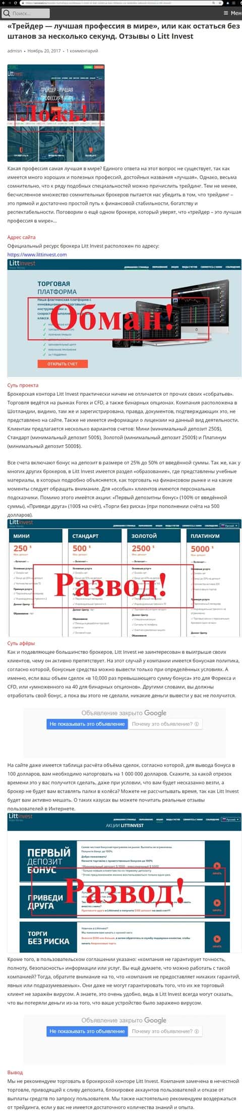 - Лжецы лохофорекса LittInvest разыграли аферу со своим клиентом