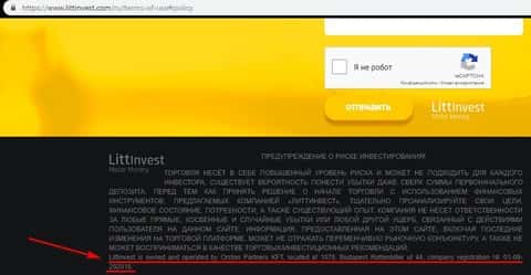 LittInvest - это мошенническая организация, где каждый трейдер может сначала себя почувствовать самым желанным клиентом, а потом лишиться всего и залезть в долги. Даже то что кухня зарегистрирована в Будапеште это ей не добавляет доверия, так как на сайте размещены номера телефонов Великобритании и России. Контора наняла специалистов по обману, которые обведут вас вокруг пальца и сами не заметите, как это произошло.