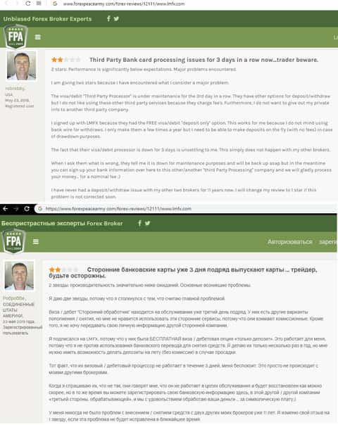 Еще один клиент рассказал как его разочаровали условия в брокерской конторе LMFX. Он поставил две звезды, но все же есть много нюансов из-за которых не хочется даже начинать с ними работать. Во-первых трудно пополнить счет без комиссии, а во-вторых, жулье создает множество проблем, что бы не отдавать ни копейки.