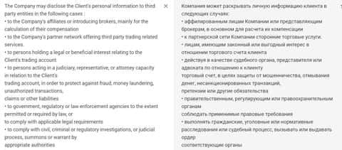 Если рассматривать надежность личных данных клиентов ЛМ ФХ, то стоит обратиться в документ под названием Политика конфиденциальности. Жулики там указали множество исключений при которых они будут раскрывать ваши личные данные и, в случае утечки информации, они будут ссылаться именно на этот пункт.