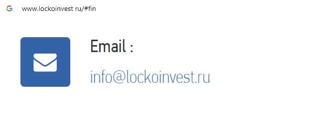 Лохотронщики Locko Invest на своем официальном онлайн-ресурсе указывают адрес электронной почты, а именно:
