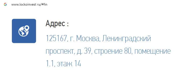 Шулера Локо Инвест указали адрес местонахождения главного офиса своей компании, который наверняка липовый: