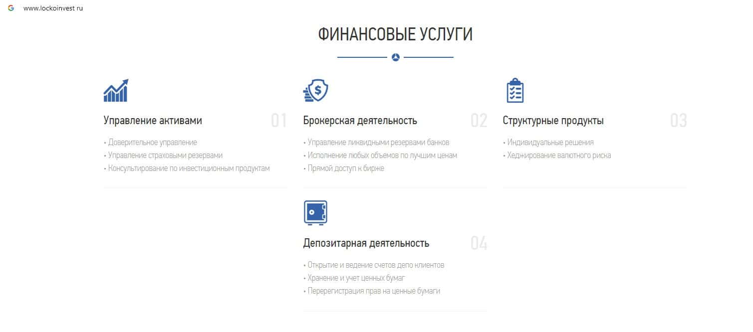 - Услуги предоставляемые на сайте шараги Locko Invest