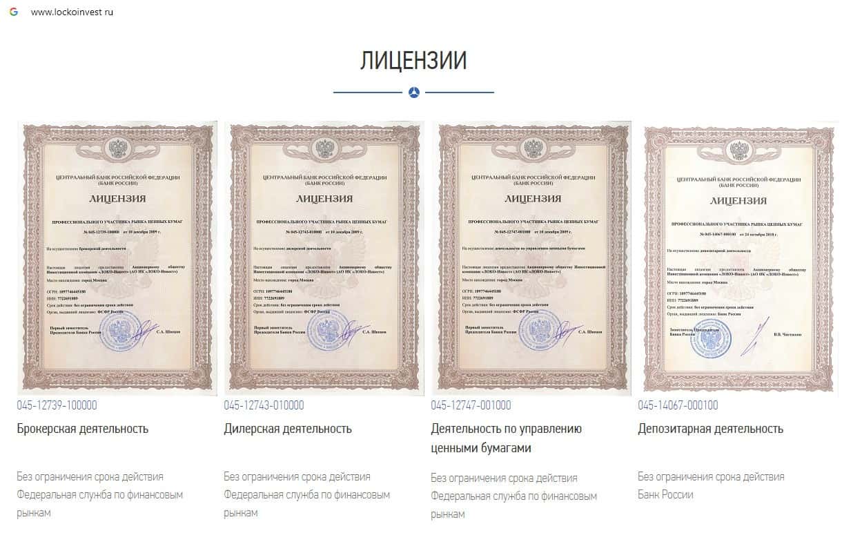 У мошеннической организации Локо Инвест имеется лицензия, выдана Центральным Банком Российской Федерации, которая не является гарантией качества предоставляемых услуг.