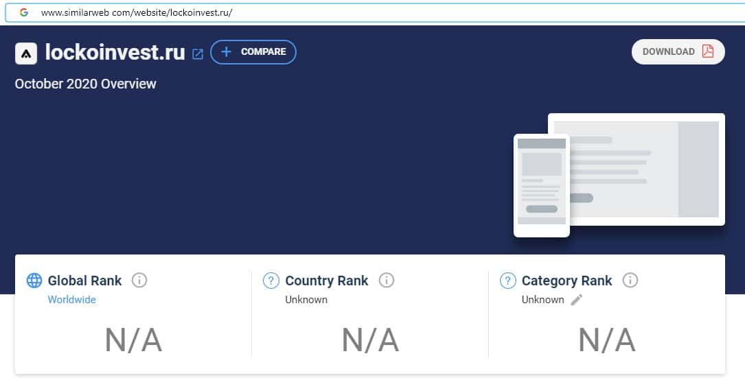 При проверке источников бренда по странам компании Locko Invest на сайте similarweb com, информация отсутствует, что является признаком фейкового интернет-проекта.