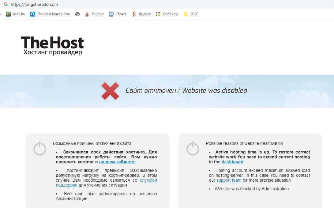 LongShortCFD контора открылась менее 3-х месяцев назад. Не успели лоховоды толком себя зарекомендовать на финансовом рынке, а уже многочисленные жалобы и разоблачения вынудили сворачивать деятельность шараги! Для того, чтобы избежать уголовного наказания за совершенные мошеннические схемы, лохотронщики LongShortCFD слили официальный сайт!