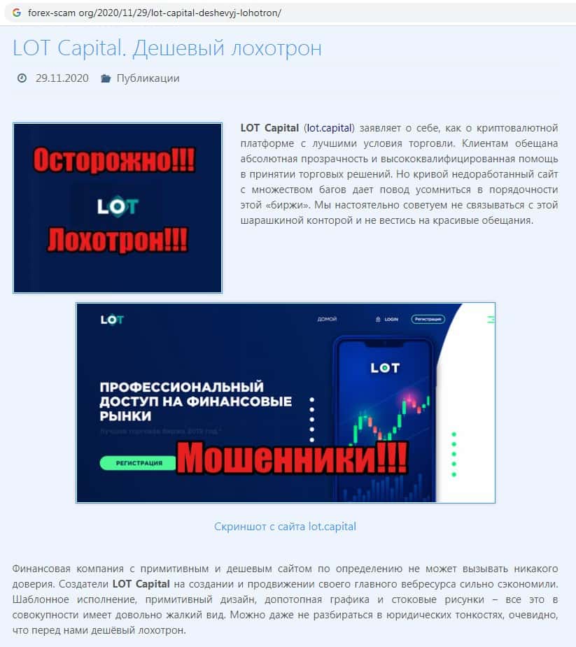 Лот Капитал - обзоры скам-брокера на других интернет-сервисах