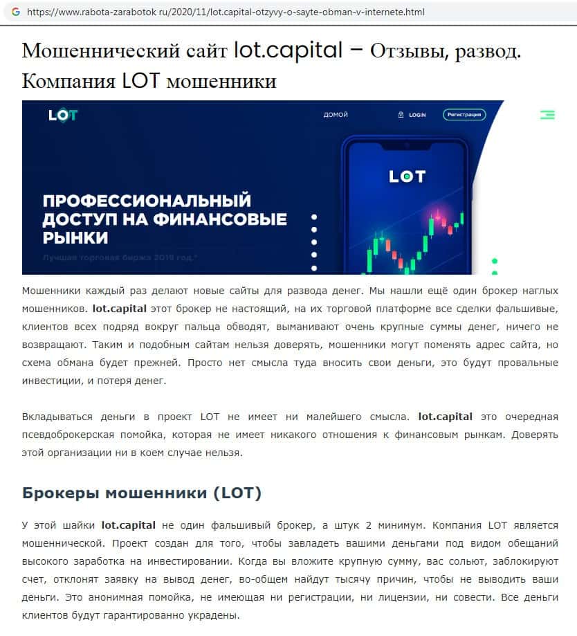 Lot Capital - официальный интернет-ресурс скам-организации Лот Капитал
