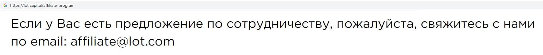 Лохотронщики Лот Капитал на своем официальном онлайн-ресурсе указывают адрес электронной почты, а именно: