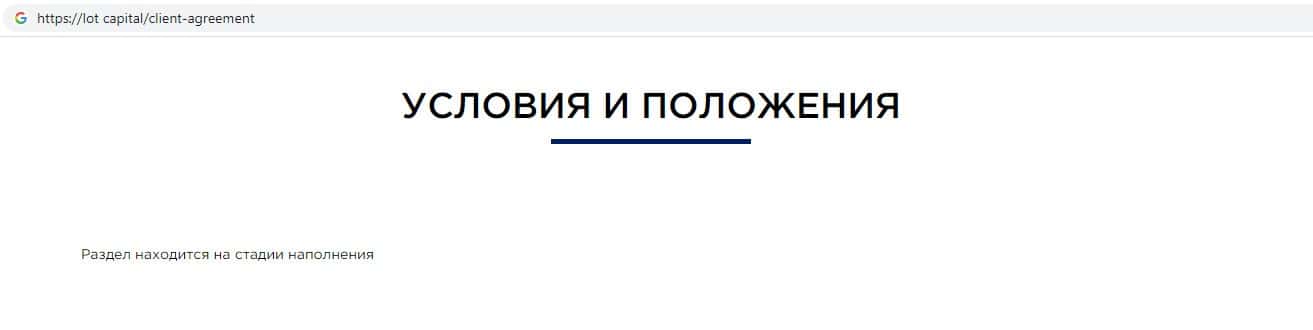 - Отсутствие клиентского соглашения на интернет-портале шараги Lot Capital