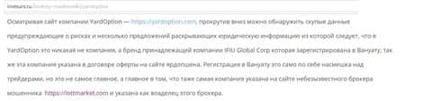 Аферисты Ярд Опцион и мошенники ЛОТ МАРКЕТ - из одной группа мошенников