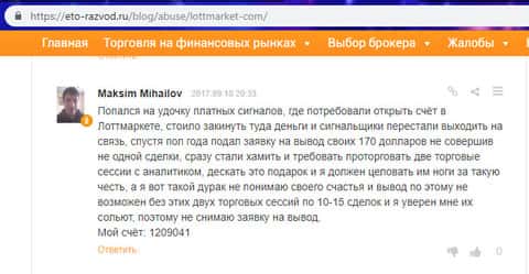 - Отзыв клиента о мошеннической схеме лохотрона ЛОТ МАРКЕТ
