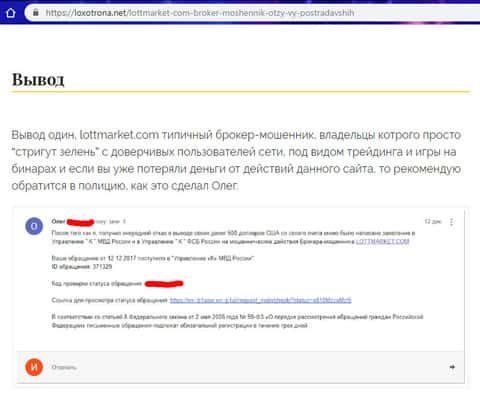 Отзыв клиента о мошеннической схеме лохотрона ЛОТ МАРКЕТ