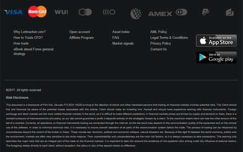 Завершается сайт лохотрона ЛОТ МАРКЕТ уже на не такой оптимистичной ноте, на которой был и раньше, ведь в своих предупреждениях о рисках аферисты LOTTMARKET уже сливаются от вышесказанного предупреждая о том, что они не будут нести ответственности в случае потери клиентом средств и говорят о том, что он сам должен уметь торговать на платформе.