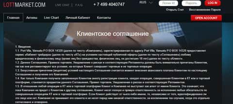 Клиентское соглашение аферистов LOTTMARKET