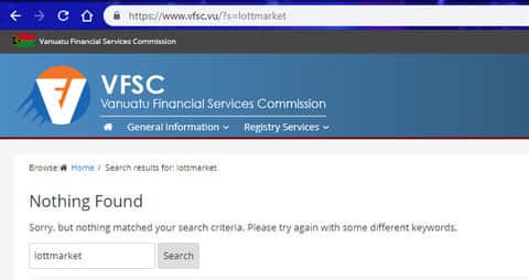 Так как у жуликов ЛОТ МАРКЕТ на сайте нету упоминаний о лицензии, мы обратились к регулятору, который находится по месту регистрации аферистов LOTTMARKET, указанной у них на сайте. Как оказалось шулеров ЛОТ МАРКЕТ в списках регулятора нету. На изображении ниже вы можете увидеть результат поисков мошенников LOTTMARKET на сайте регулятора.