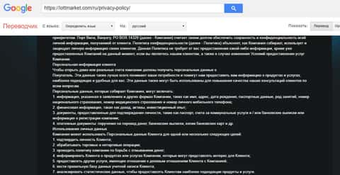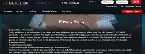 Вот уже политику аферисты LOTTMARKET поленились переводить, в связи с чем она и представлена у мошенников на сайте только на английском языке. Хотя это так же может быть связано с тем, что жулики просто не хотят, что бы русскоязычные трейдеры ознакомились с ней, ведь именно они страдают от мошеннического промысла аферистов ЛОТ МАРКЕТ.