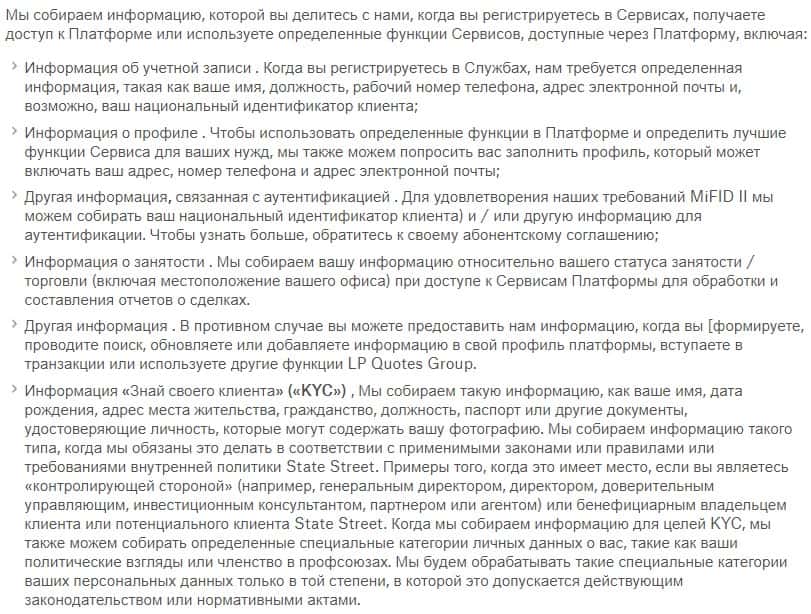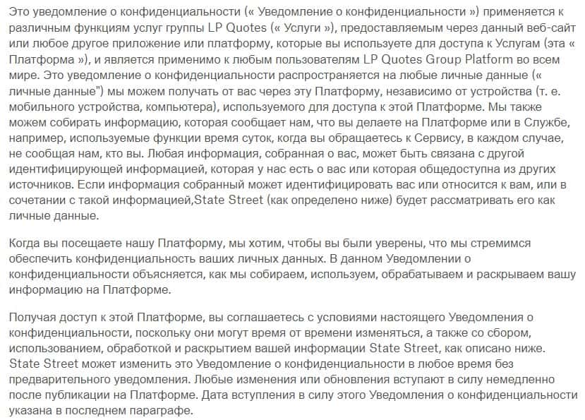 Политика конфиденциальности мошеннической консалтинговой компании ЛП Куэйт, опубликованная на ее официальном сайте, начинается с условия, что пользователи обязаны предоставлять любую персональную информацию о себе по запросу компании, причем компания может менять условия предоставления и раскрытия этой информации в любое время и без предварительного уведомления клиента.