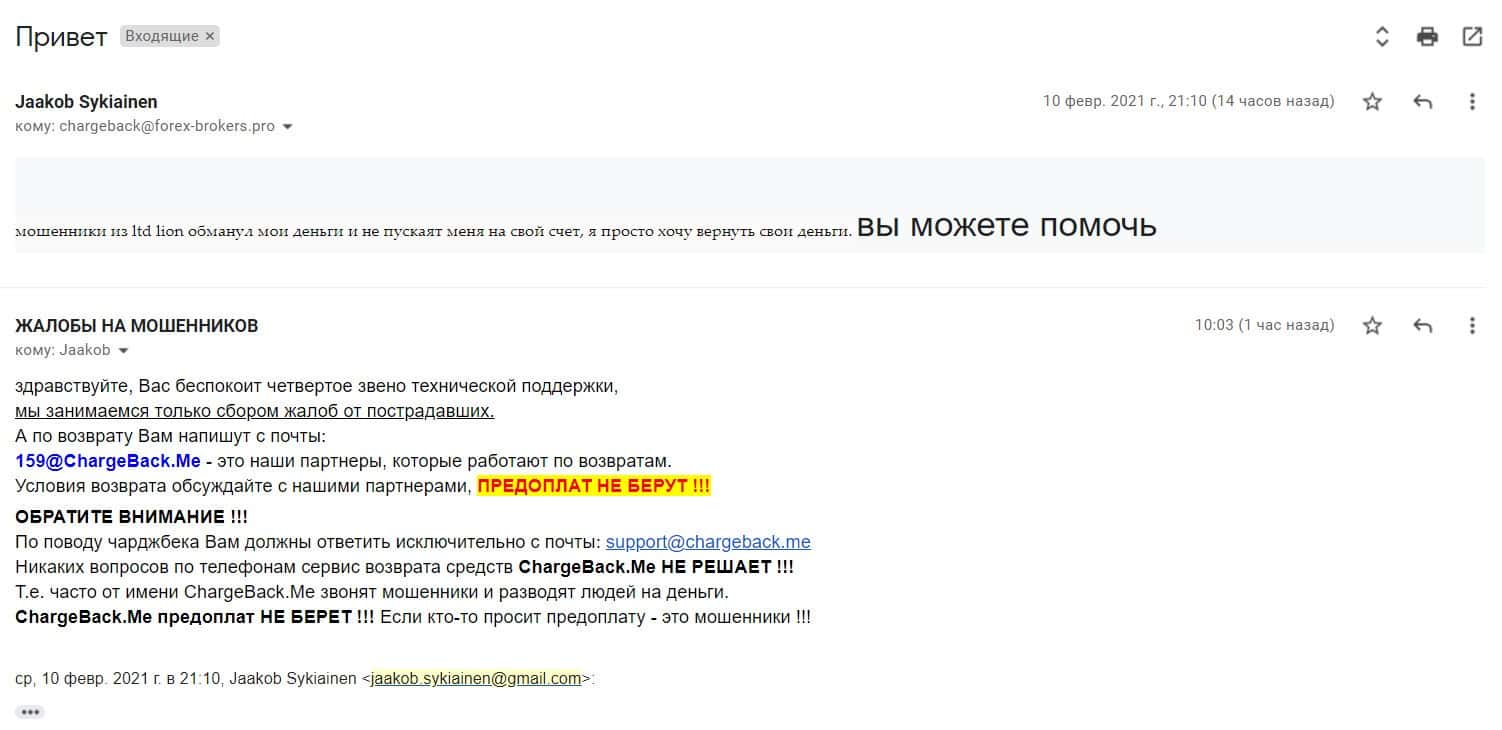 В данном разделе предлагаем увидеть информационный материал в виде жалобы на мошенническую контору ЛТД Лион, которая развела клиента на 30 долларов США.