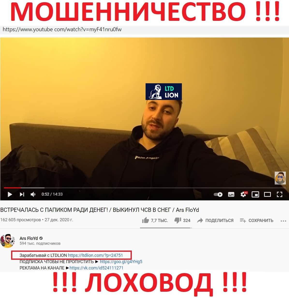 Видео-блогер Ars FloYd и мошеннический проект LTDLion