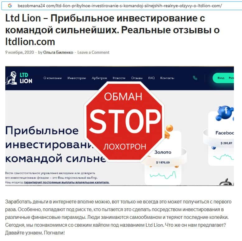 Далее предлагаем ознакомиться со статьей-обзором инвест-лохотрона ЛТД Лион о том как жулики обманывают людей на деньги.