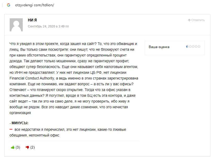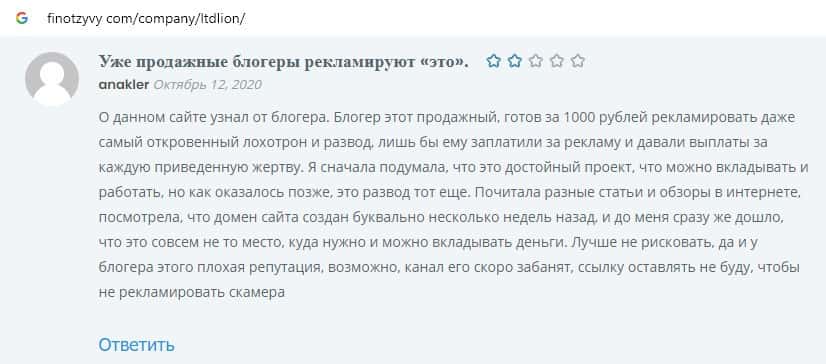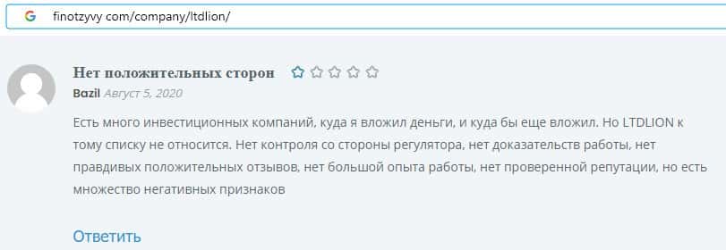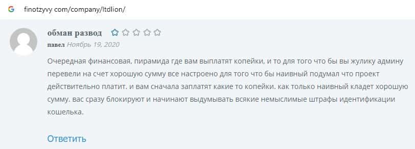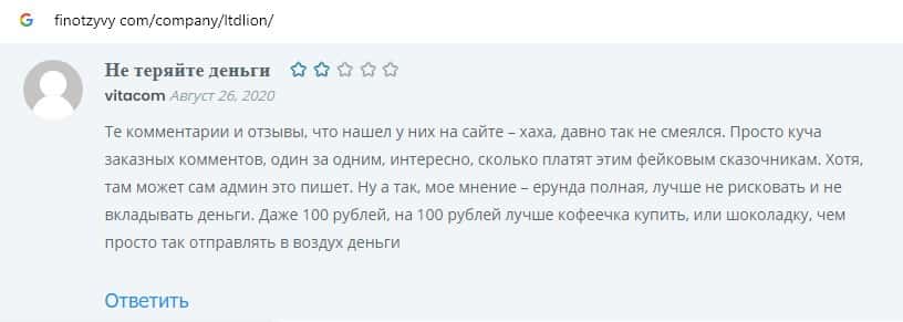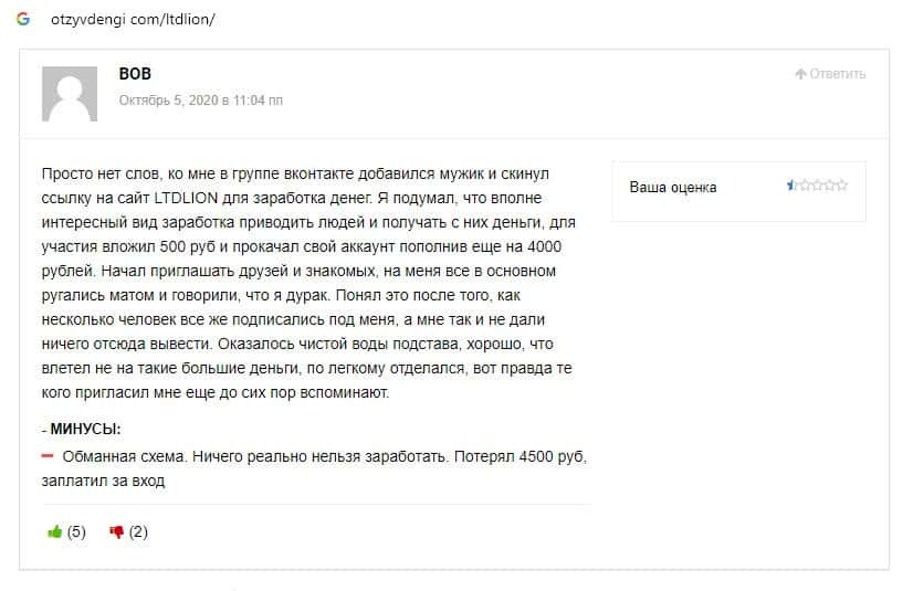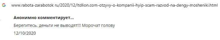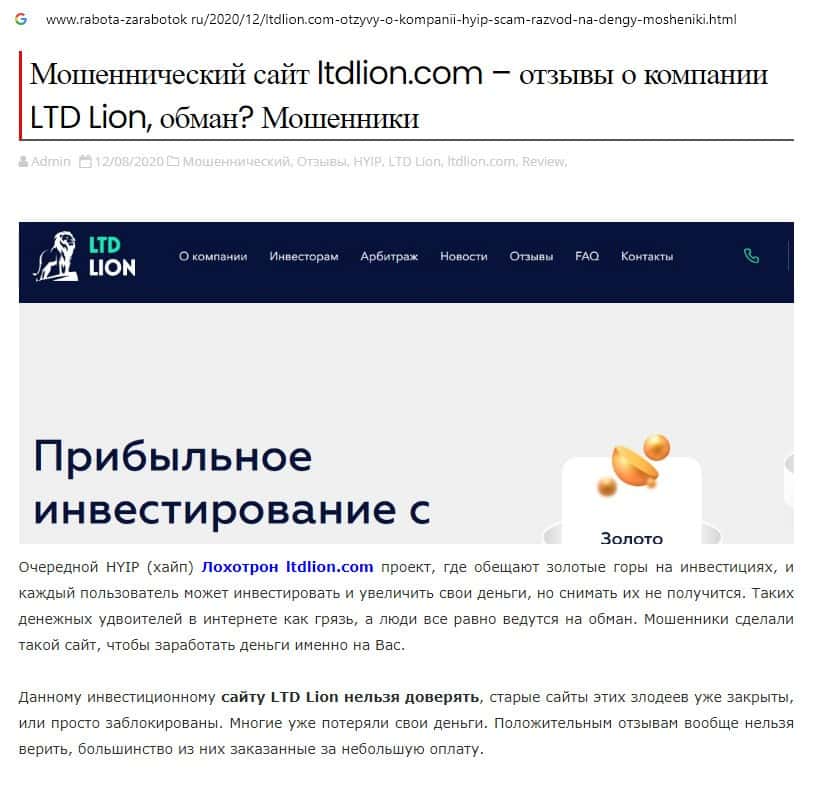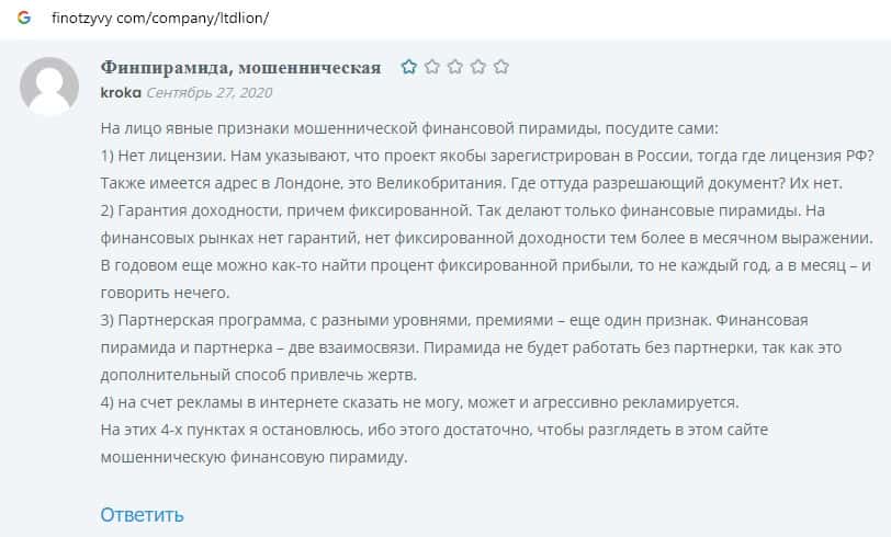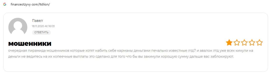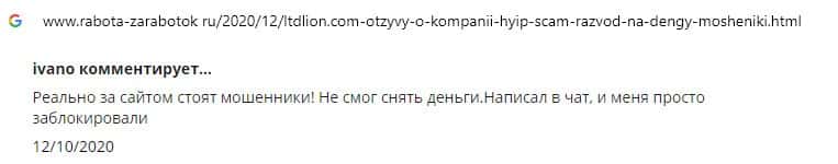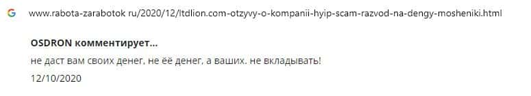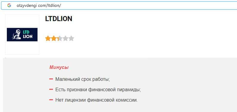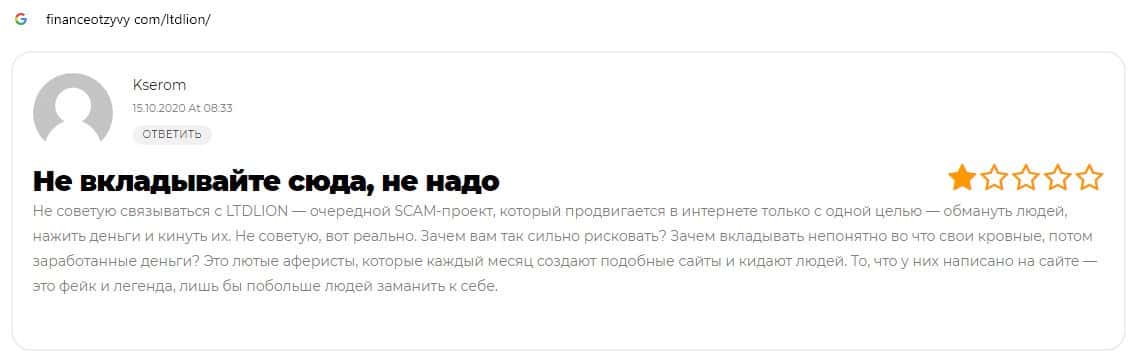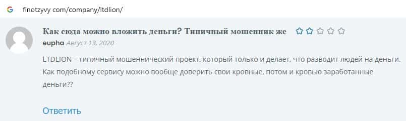 - Отзывы о скам-проекте LTDLion, ныне присутствующие в интернет-сети