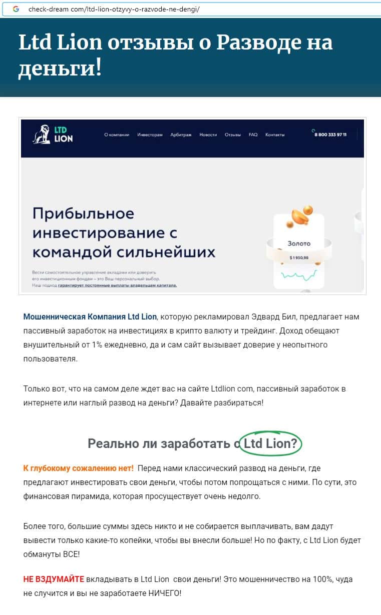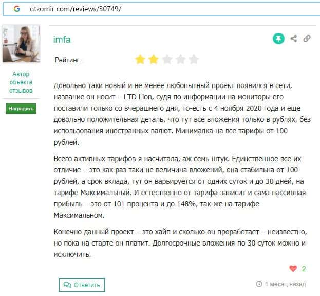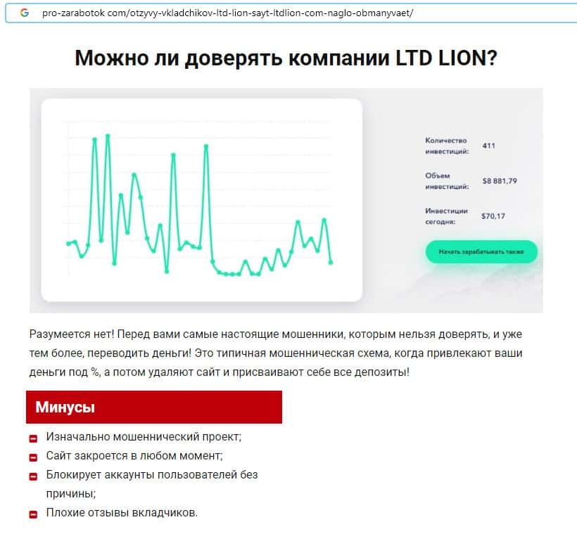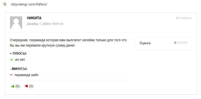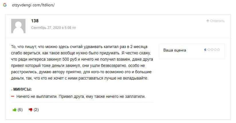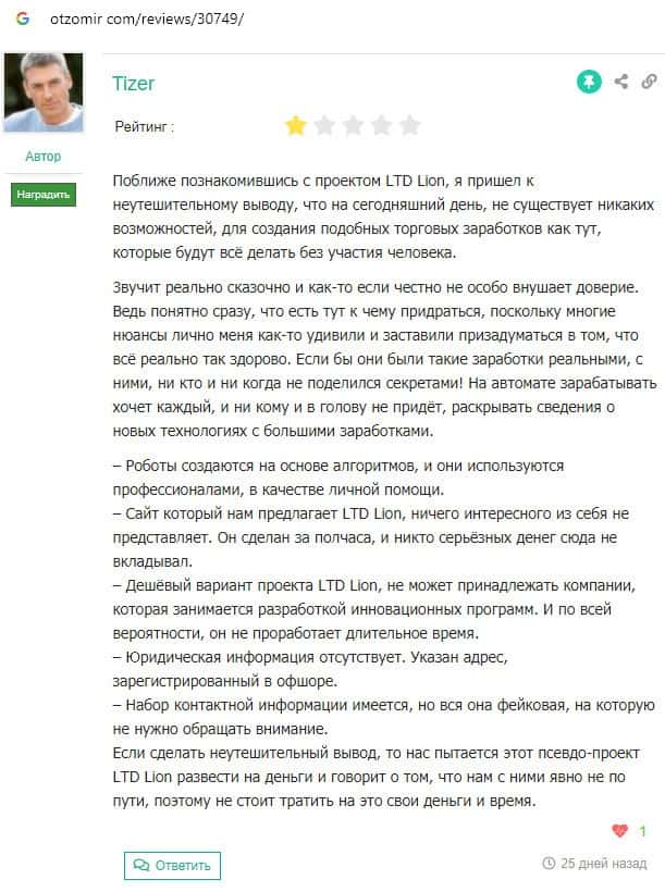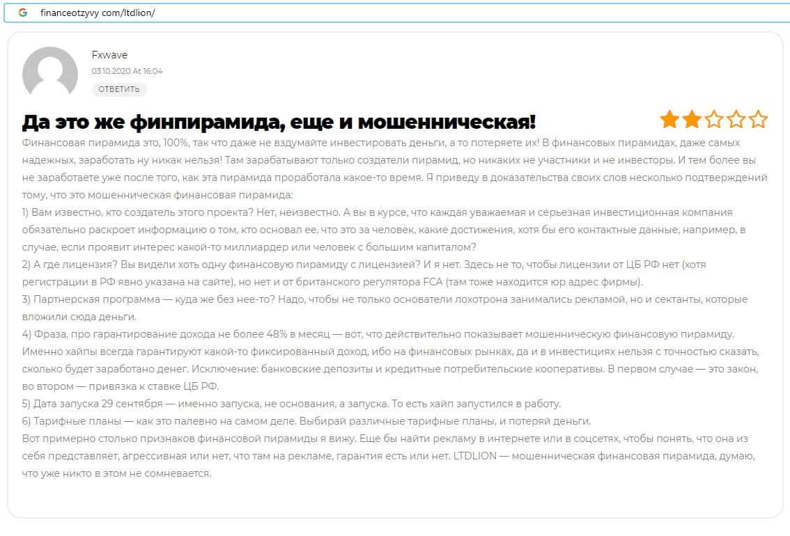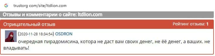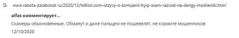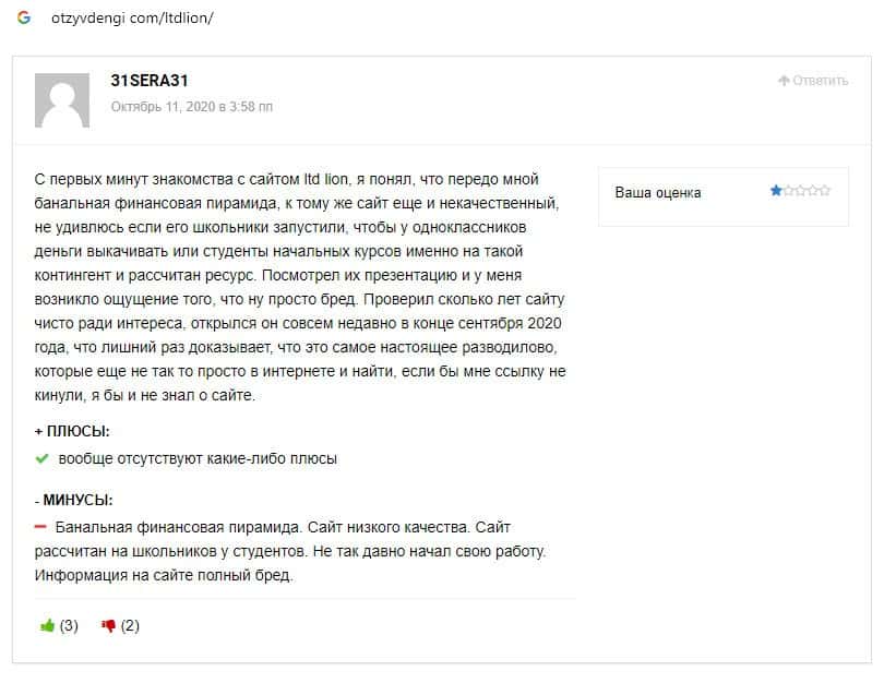 - Отзывы о скам-проекте LTDLion, ныне присутствующие в интернет-сети