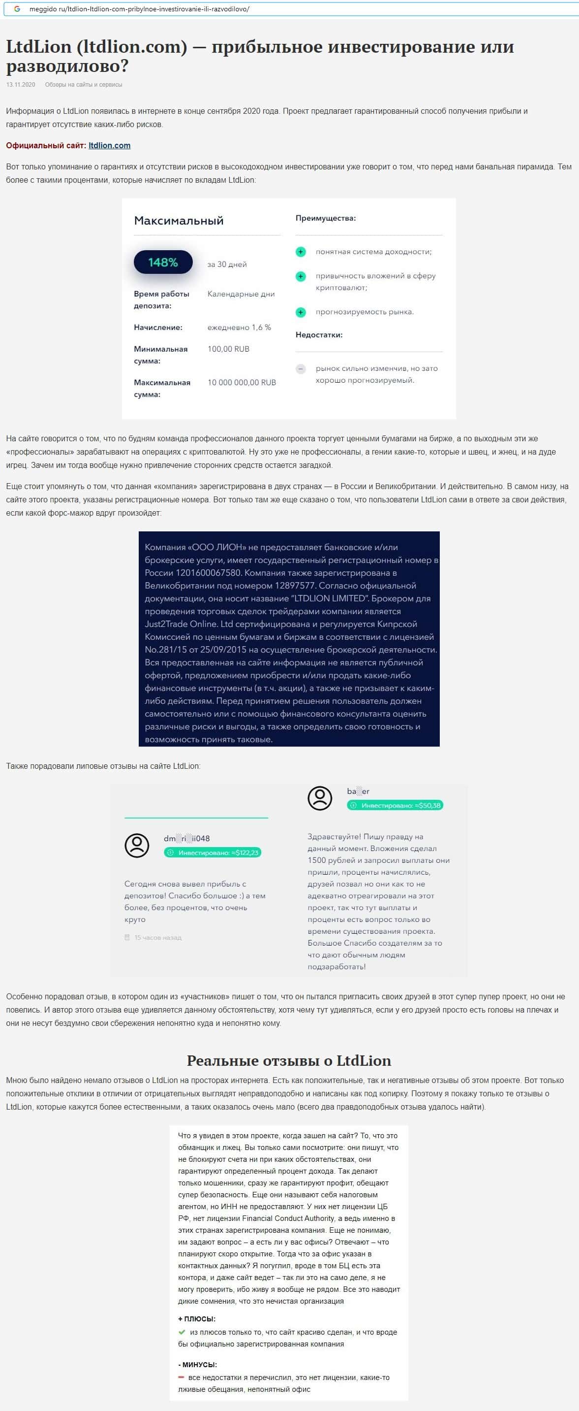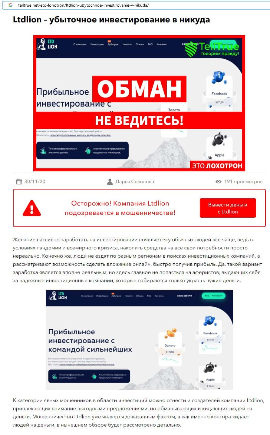 Отзывы о скам-проекте LTDLion, ныне присутствующие в интернет-сети