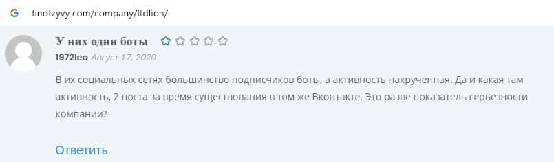 - Контору ЛТД Лион пользователи называют разводом на деньги