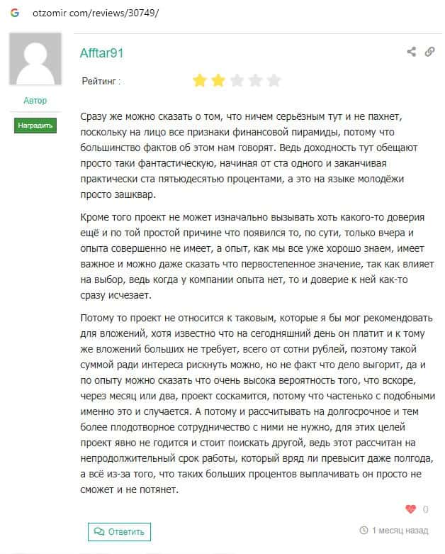 Перед нами очередной инвестиционный лохотрон, банальная финансовая пирамида ЛТД Лион, которая обворовывает людей, обещая стабильный доход, которого здесь нет.