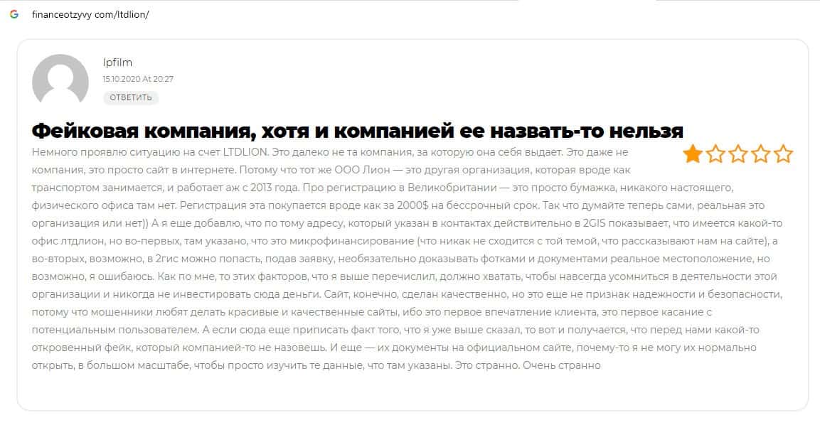 ЛТД Лион - обзоры мошеннической конторы во всемирной паутине