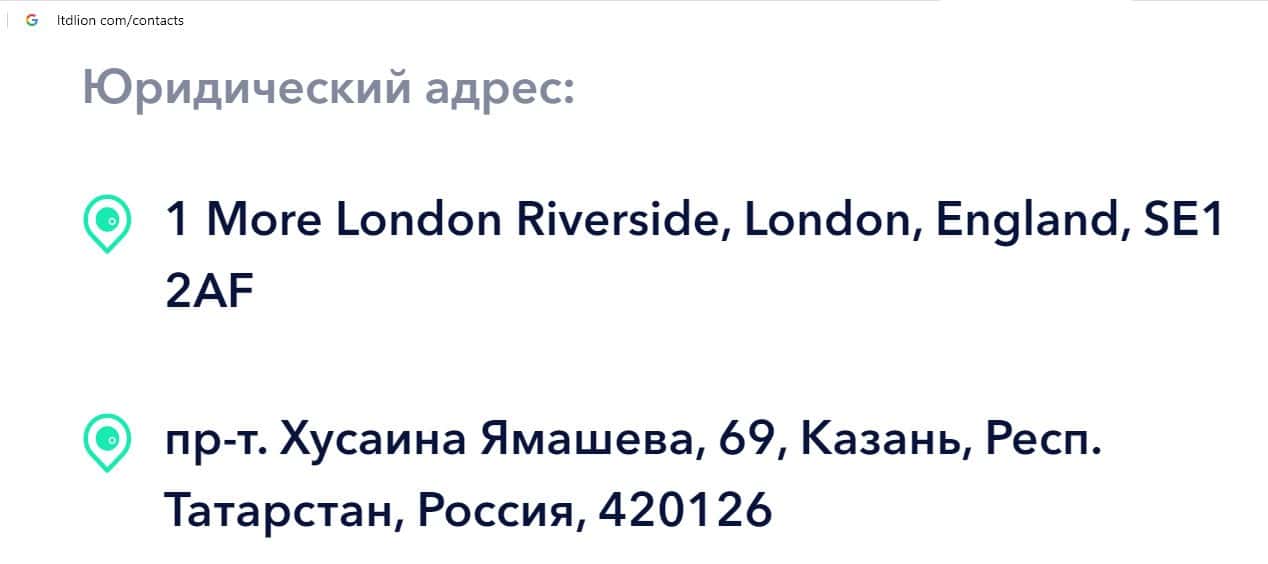 Сведения о месте регистрации шараги LTD Lion фальшивы, так как большинство мошеннических проектов у себя на сайте указывают адрес в Лондоне для приманки очередного лоха.