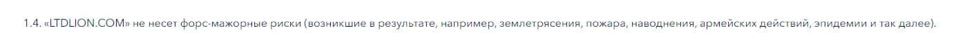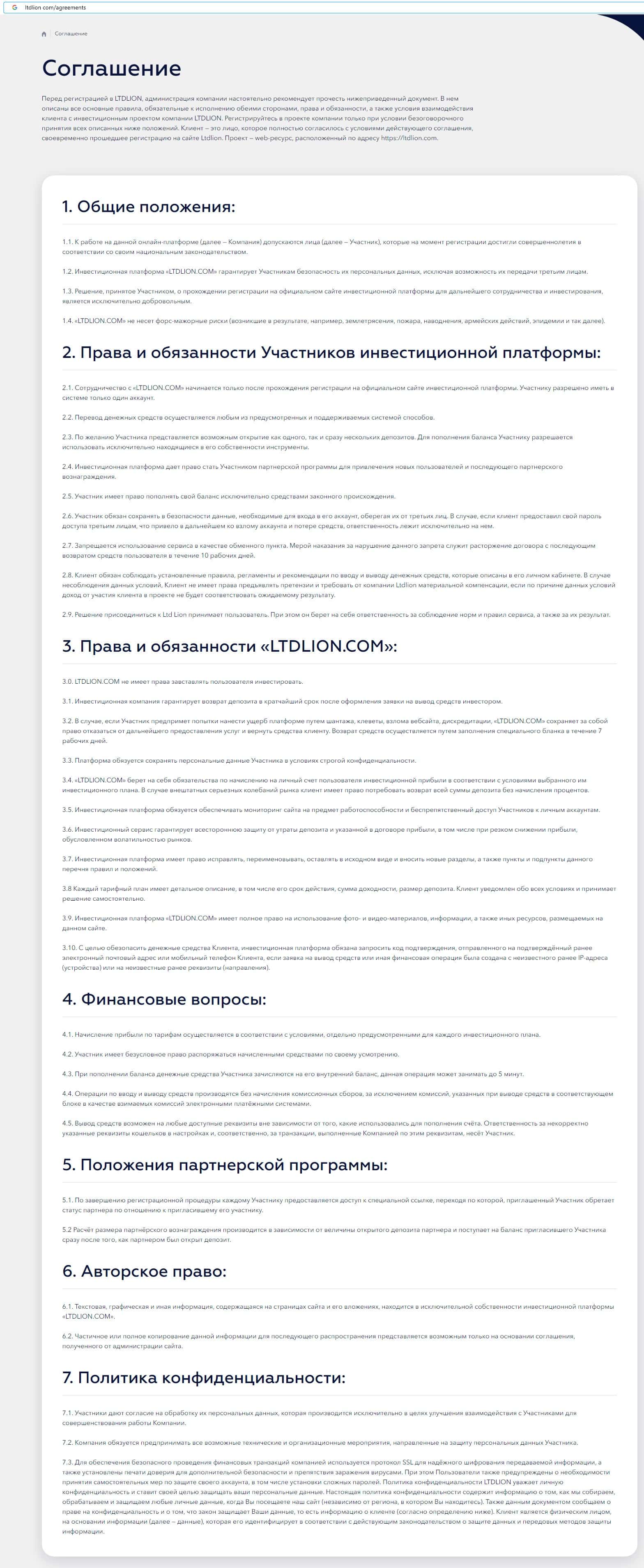 Клиентское соглашение скам-компании ЛТД Лион не имеет никакой юридической силы, больше напоминает инструкцию по использованию сайта.