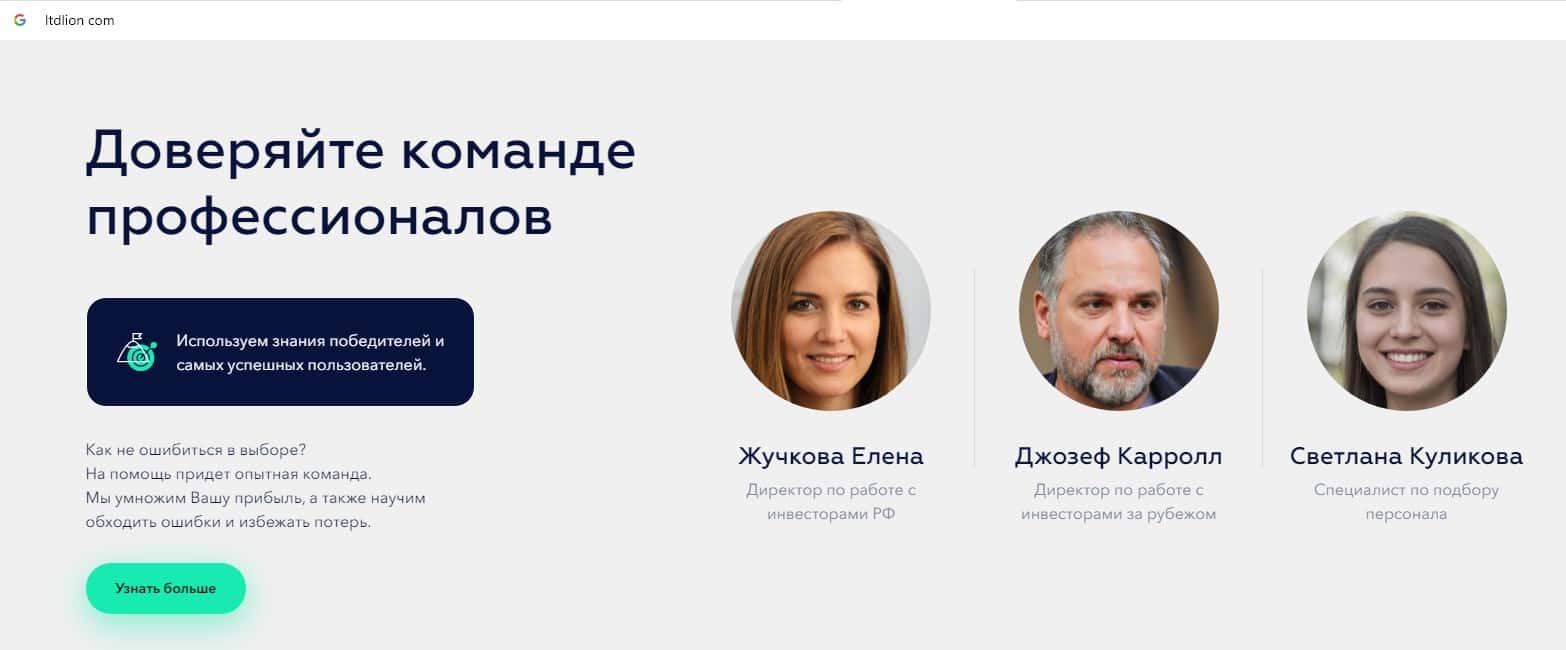 Аферисты LTDLion предоставляют вероятно фальшивую информация о руководстве, но точно знать о том, кто на самом деле руководит скам-проектом мы не можем.