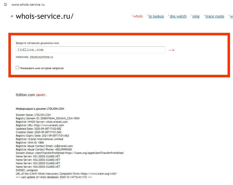 - Данные о владельце домена компании ЛТД Лион отсутствуют